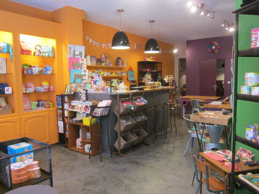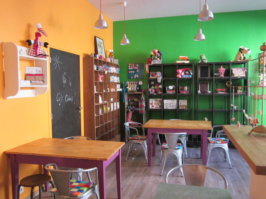 La réponse de Ma Bulle Déco : nous avons réalisé des plans d'implantation, puis une liste de mobilier adaptés au besoin et à l'espace (tables, chaises, étagères, meuble de caisse, etc.). Le tout a été chiné et relooké dans notre atelier sur mesure, et adapté aux couleurs du café.